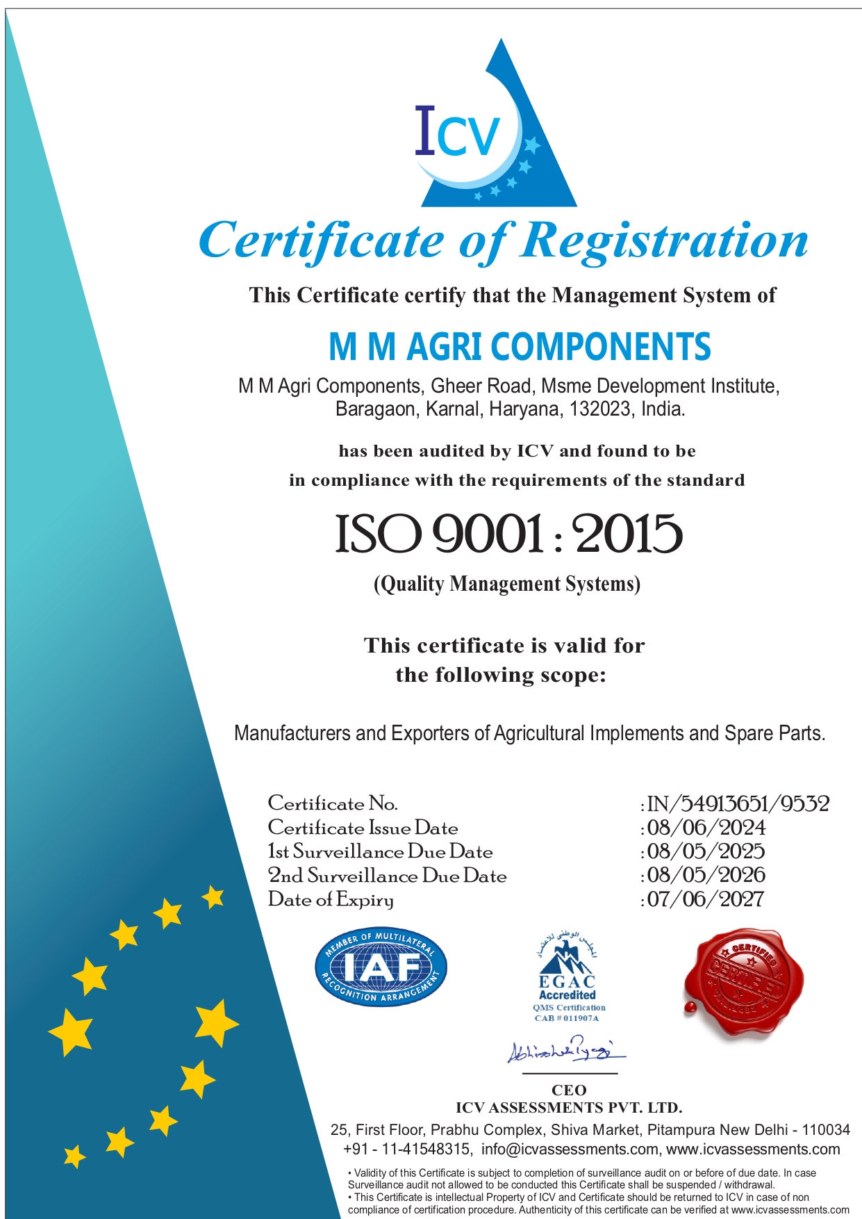 MM Agri Components follows ISO-certified manufacturing standards to ensure high quality and reliable production processes. Our system focuses on maintaining consistency, precision, and strict quality control at every stage of manufacturing.